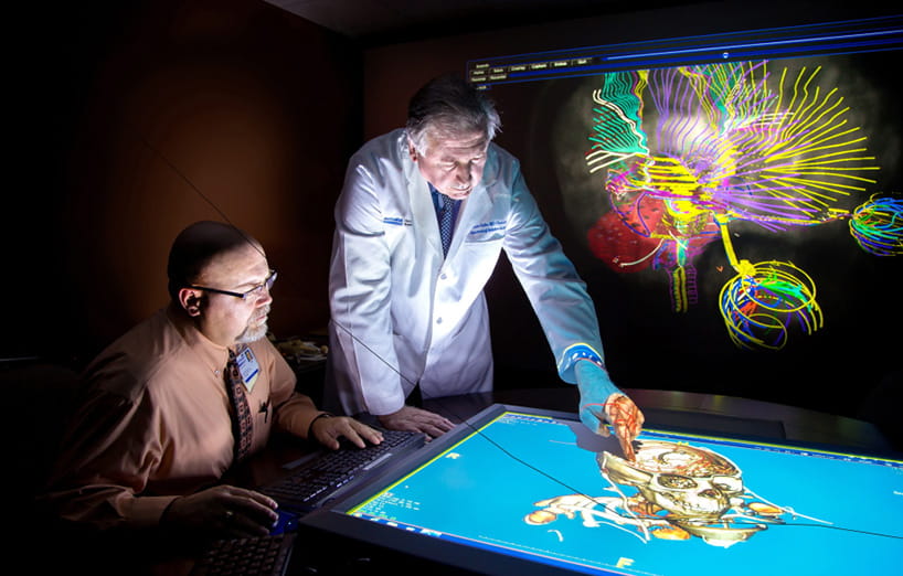The powerful and exciting developments in planning and delivering cancer treatments take place in a unique virtual imaging environment developed at Houston Methodist. The unique visualization environment enables physicians to view multidimensional images of patients' internal structures on a multi-touch table, using enormous amounts of data extracted from several different types of imaging studies: