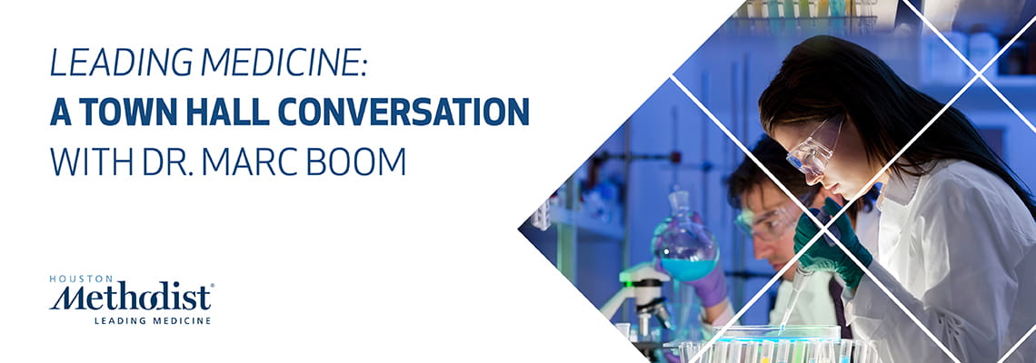 Dr. Marc Boom began hosting Town Hall Conversations with other leading Houston Methodist physicians, researchers and clinician-scientists in April 2020 to provide the most up-to-date information about COVID-19 and answer the most pressing questions from the community about the virus, including testing, treatments, vaccines and the latest research. The Town Halls have since transitioned into discussions about the latest advancements and innovations in a variety of medical areas. Each program ends with contact information if you would like to learn more about the topics covered in that Town Hall.
